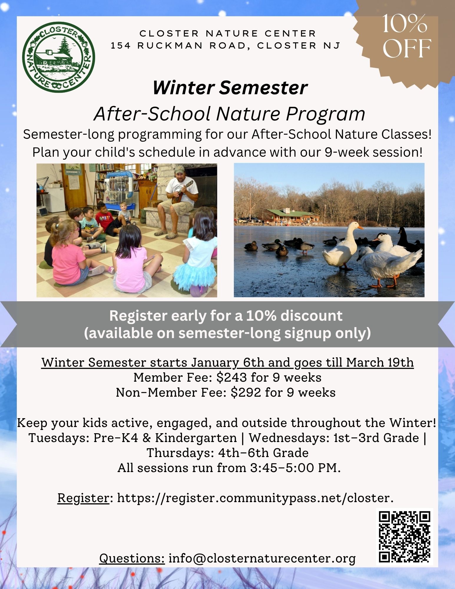 If you have any questions, please email info@closternaturecenter.org or call 201-800-2008.