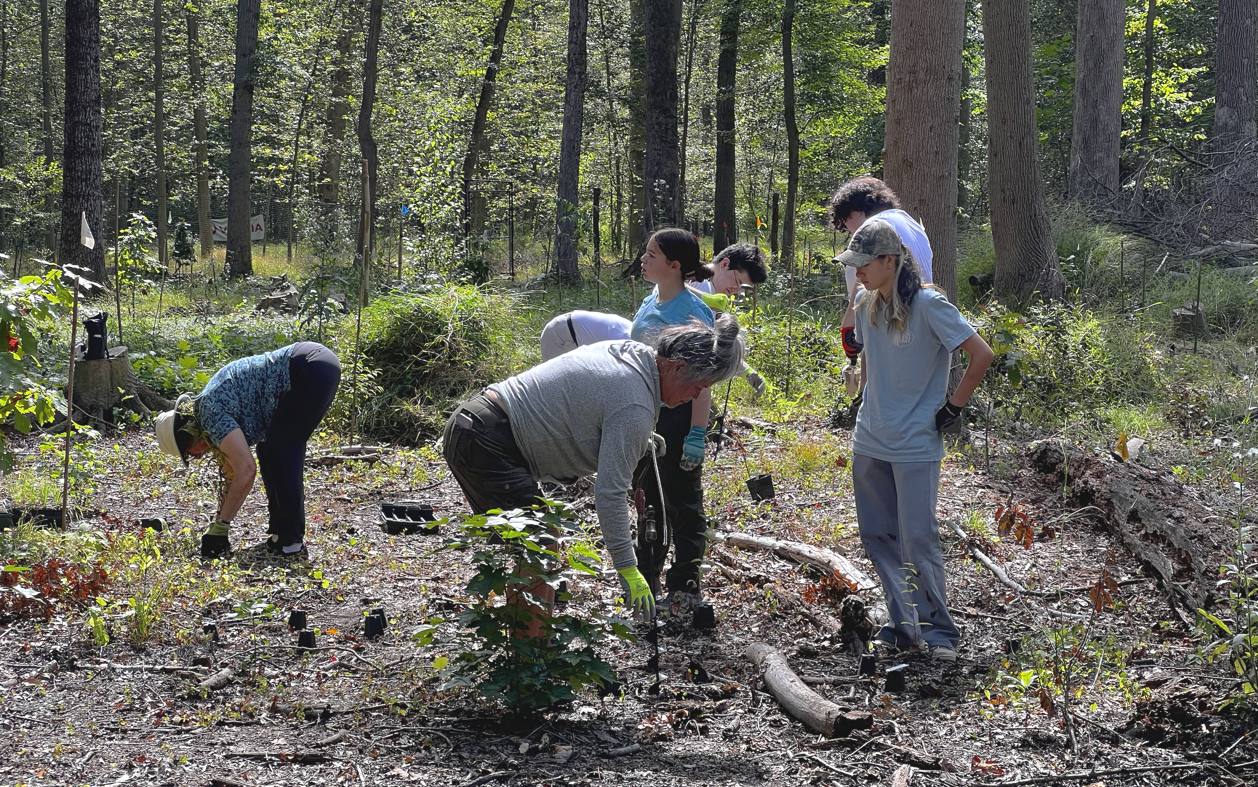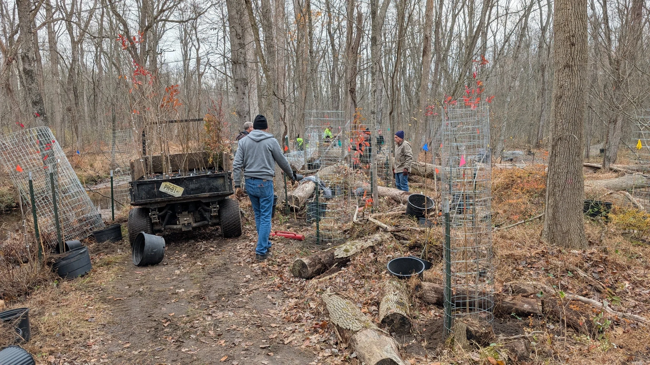In 2023, the CNC constructed a one-acre deer-proof exclosure using rot-resistant locust posts and heavy mesh fencing. In the spring of 2024, over 200 native wetland plant species were planted by a combination of volunteers and professional forest managers; the species planted and their distribution was established in partnership with the Wild Woods Restoration Project.